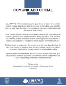 Guasave / Sinaloa / La Junta Municipal de Agua Potable y Alcantarillado de Guasave (JUMAPAG) informó que continuará la suspensión […]