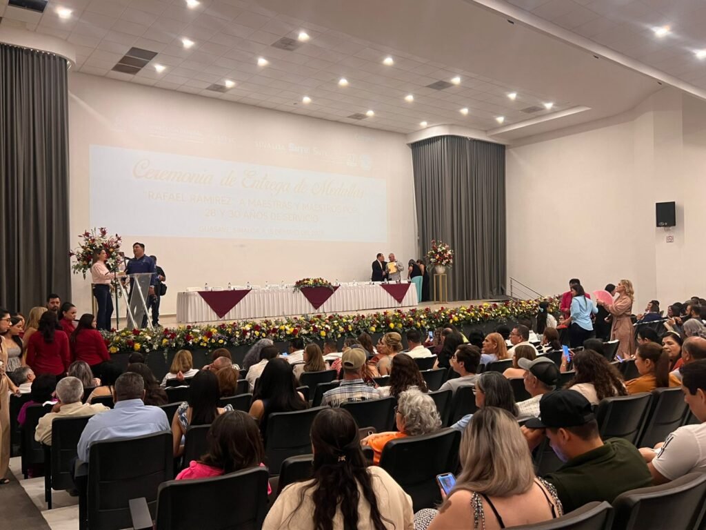En el marco del Día del Maestro, 35 docentes con 28 y 30 años de servicio fueron reconocidos con la medalla “Rafael Ramírez”, en una ceremonia encabezada por la presidenta municipal, Dra. Cecilia Ramírez Montoya. Además de la medalla, las y los maestros galardonados recibieron un reconocimiento y un estímulo económico otorgado por la Secretaría de Educación Pública y Cultura (SEPYC).