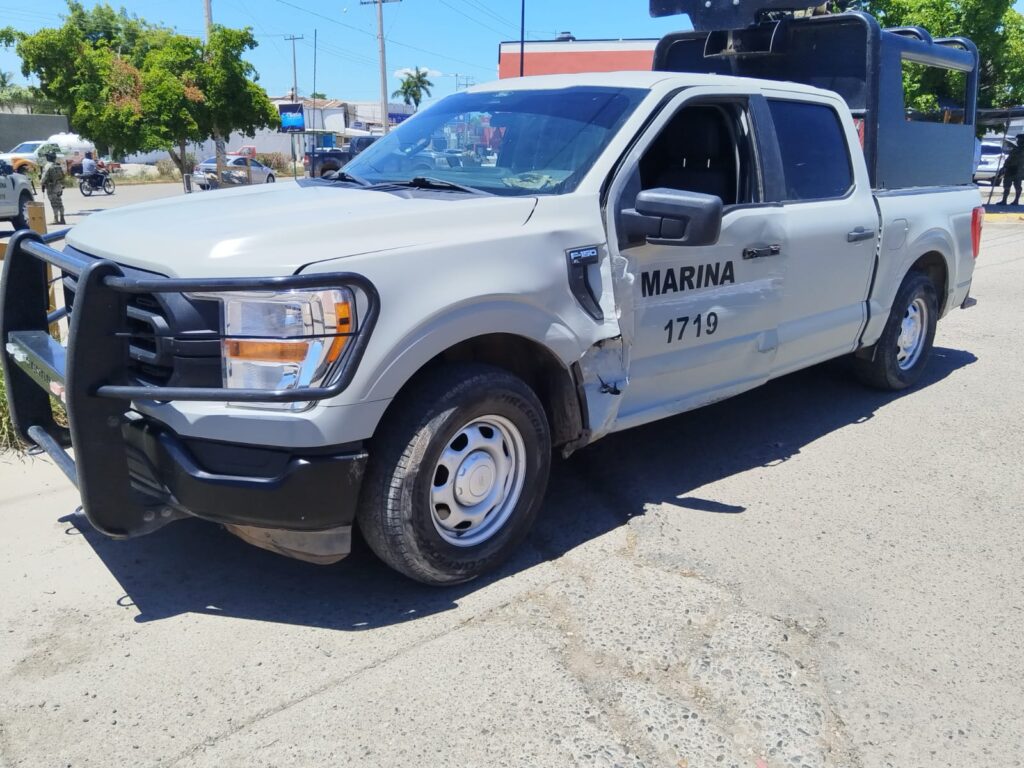 • Vehículo #1: Camioneta tipo pickup, marca Ford, color gris, modelo 2022, con placas de circulación 1719, propiedad de la Secretaría de Marina Armada de México. Se desconoce la identidad del conductor.