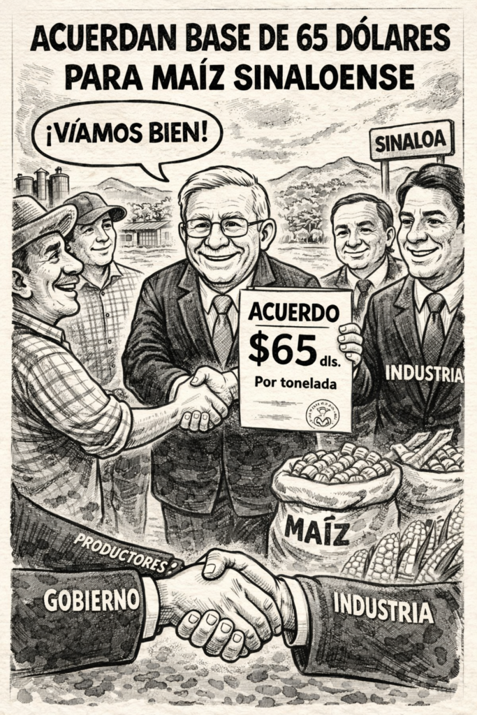 Ciudad de México / Productores sinaloenses y representantes de la industria avanzaron en acuerdos para la comercialización del maíz del ciclo agrícola Otoño–Invierno 2025–2026, al establecer una base homologada de 65 dólares por tonelada para la industria de la harina, el sector pecuario y bodegueros.