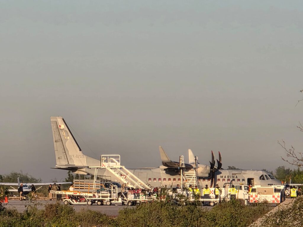 De acuerdo con la información recabada en el lugar, el avión pertenece a la Secretaría de Marina y es utilizado para transporte táctico de personal y logística operativa. La unidad arribó con elementos navales a bordo y fue operada por una tripulación mixta de la Armada de México.