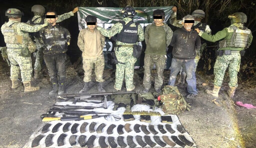 Por otra parte, en Escuinapa, en el poblado Tecualilla, elementos del Ejército Mexicano detuvieron a cuatro hombres y liberaron a una persona que se encontraba privada de la libertad. En el lugar también aseguraron un fusil Barrett, tres armas largas, 35 cargadores, mil 396 cartuchos, tres chalecos tácticos y una placa balística.