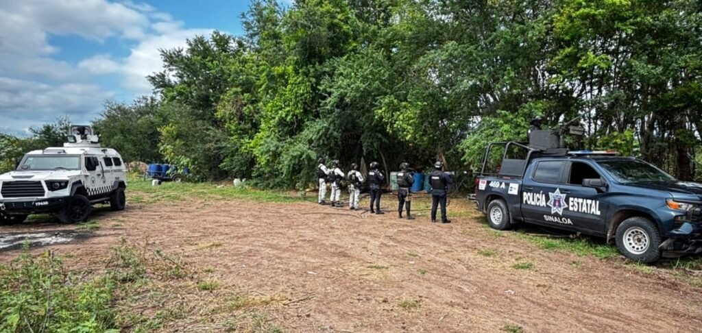 Mocorito | Sinaloa | Elementos del Grupo Interinstitucional, conformado por la Policía Estatal Preventiva, Guardia Nacional, Ejército Mexicano, Secretaría de Marina, Secretaría de Seguridad y Protección Ciudadana, Fiscalía General de la República y Fiscalía General del Estado, aseguraron y destruyeron un área de concentración de sustancias químicas utilizadas para la elaboración de drogas en la comunidad de Rancho Viejo.