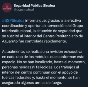 Controlan situación de seguridad en el penal de Aguaruto, Sinaloa Leer entrada »
