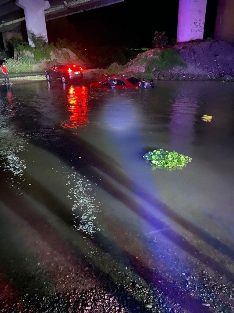 El hecho fue atendido alrededor de las 04:30 horas del 3 de agosto por elementos de Tránsito a bordo de la unidad 683. Al llegar al sitio, los agentes localizaron un automóvil tipo sedán, color rojo, modelo 2014, atrapado en el margen poniente del río. El conductor no fue localizado en el lugar y su identidad permanece desconocida.