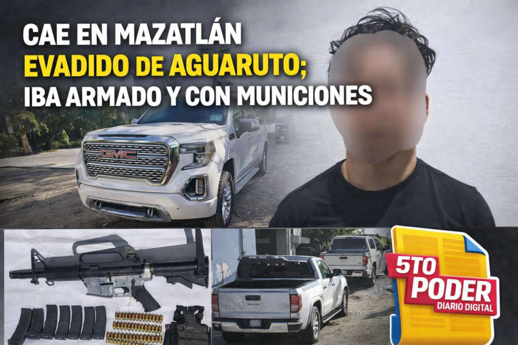 Mazatlán / Sinaloa / | Uno de los evadidos del Centro Penitenciario de Aguaruto en 2019 fue detenido en el puerto de Mazatlán durante un operativo interinstitucional, en el que además le aseguraron armas, cargadores y cartuchos.