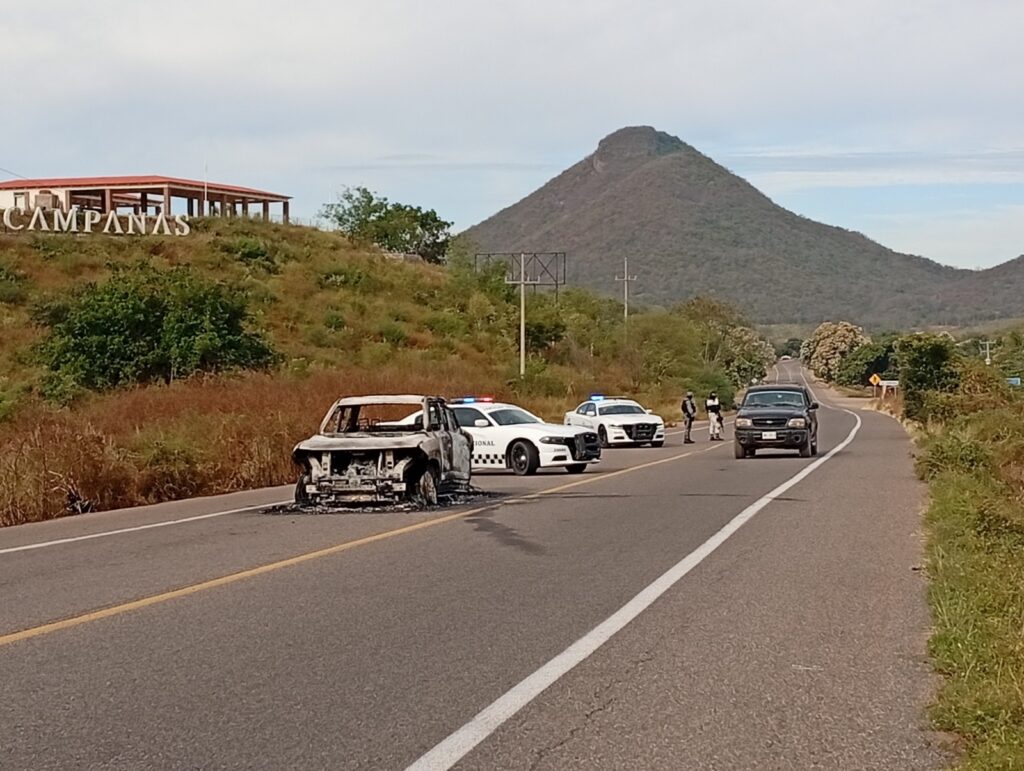 Guasave | Sinaloa | Una camioneta de la marca BYD quedó completamente calcinada la mañana de este miércoles sobre la carretera Internacional México 15, a la altura de la entrada a La Campana, donde la circulación se mantiene lenta en el carril de norte a sur.