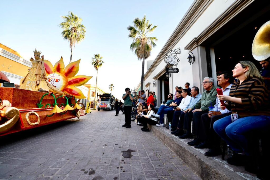 Entre trajes coloridos, música y la alegría de niñas y niños, el mandatario estatal recorrió la calle principal saludando a los asistentes, quienes disfrutaron del desfile encabezado por Camila Montes Angulo, Reina del Carnaval, y Victoria López López, Reina de los Juegos Florales. Las comparsas, acompañadas por bandas sinaloenses, encendieron el ambiente del Pueblo Mágico, resaltando la identidad musical de la entidad.