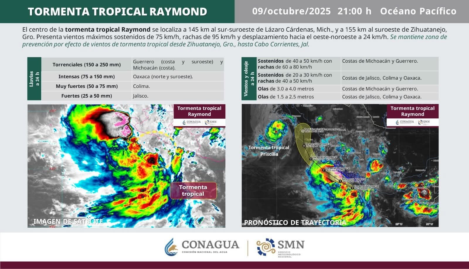 Leer más...Sinaloa | La tormenta tropical Raymond, formada frente a las costas de Guerrero, avanza por el Pacífico mexicano y se…
