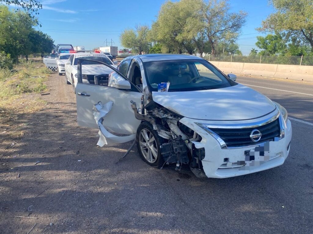 Guasave | Sinaloa | Una mujer embarazada resultó lesionada este martes tras un choque registrado sobre la carretera Internacional México 15, en dirección de norte a sur, frente a la comunidad de Cuatro Caminos, perteneciente a la sindicatura de El Burrión.