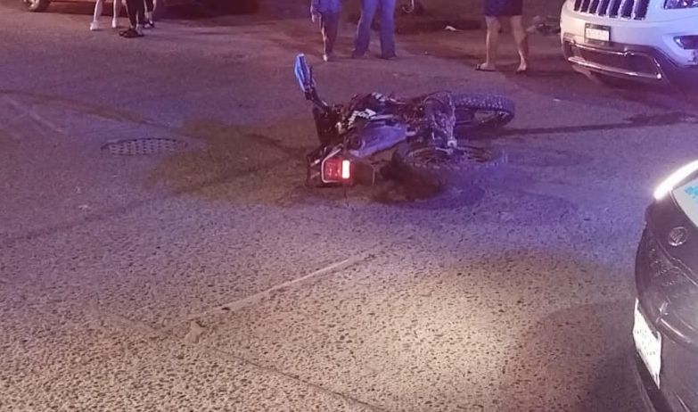 Guasave | Sinaloa | Cerca de las 00:20 horas de este domingo, se registró un choque en el cruce de la avenida Benigno Valenzuela y calle Corregidora, en pleno sector Centro, donde un joven motociclista terminó lesionado tras impactarse contra una camioneta.
