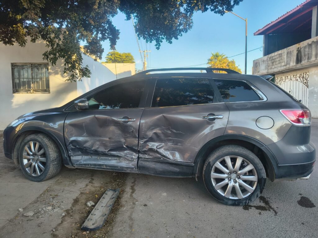 La otra unidad involucrada es una vagoneta Mazda CX-9, color gris, modelo 2008, también sin placas, la cual circulaba con preferencia de paso al momento del accidente.