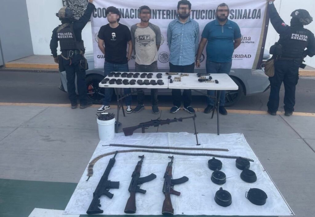 Angostura, Sinaloa.— Un total de cinco civiles armados fueron detenidos y un importante arsenal fue asegurado en el municipio de Angostura durante la tarde del miércoles 23 de abril, como resultado de operativos coordinados entre fuerzas federales y estatales.