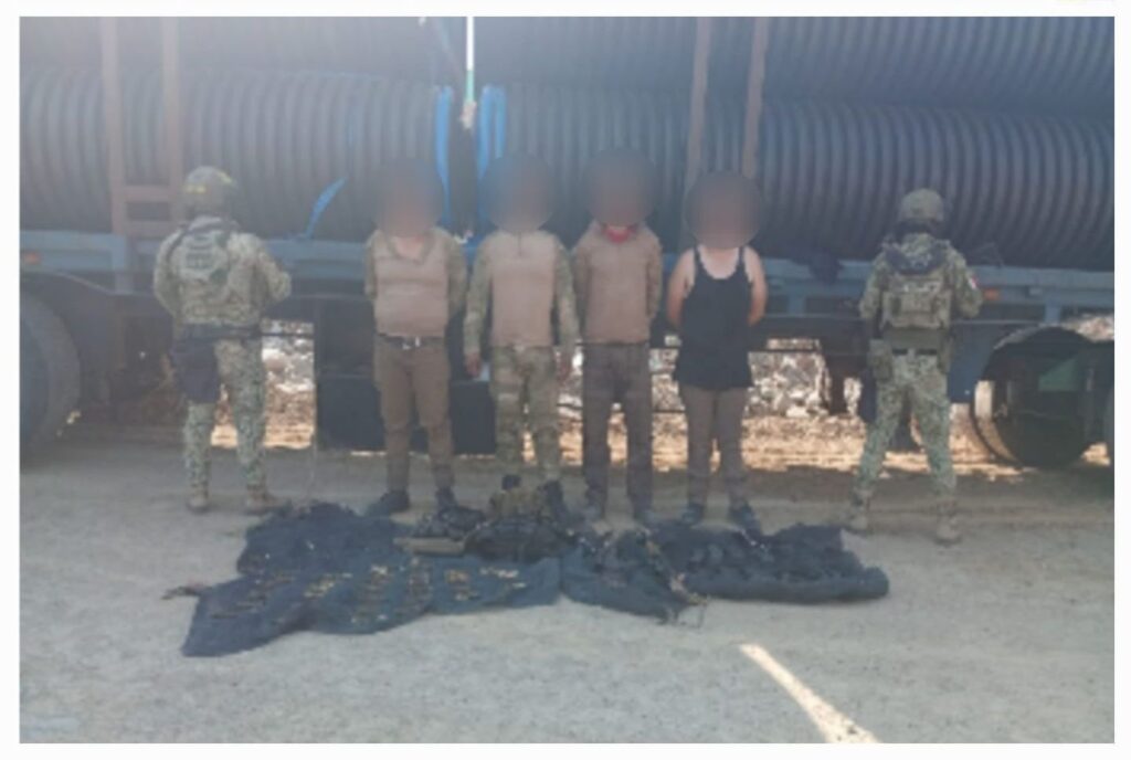 El hallazgo se registró en el poblado Presa Santa María, donde personal del Ejército Mexicano, acompañado por diversas corporaciones de seguridad, detectó a los sujetos en posesión de material bélico.