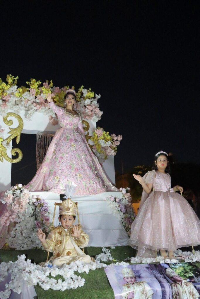 El desfile, que contó con 45 impresionantes carros, comparsas llenas de ritmo y elegantes cabalgatas, fue encabezado por los reyes y reinas de las festividades, quienes brillaron entre luces, confeti y el entusiasmo del público. Cada carro alegórico fue una obra de arte en movimiento, representando desde motivos florales hasta elementos de la identidad cultural rosarense.