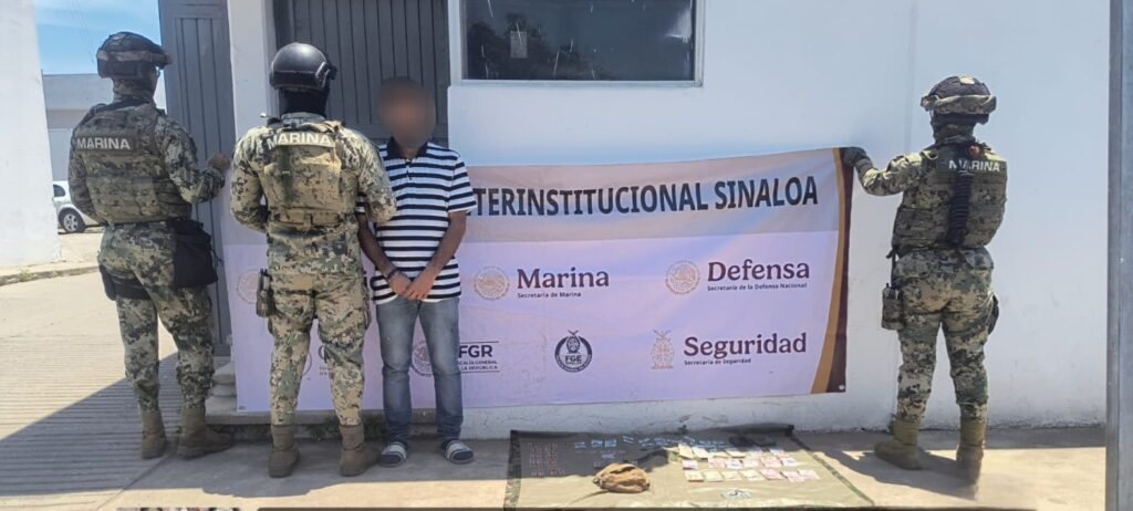 Mazatlán | Sinaloa | Integrantes del Grupo Interinstitucional detuvieron en la colonia Floresta a un hombre en posesión de distintas dosis de presunta droga.