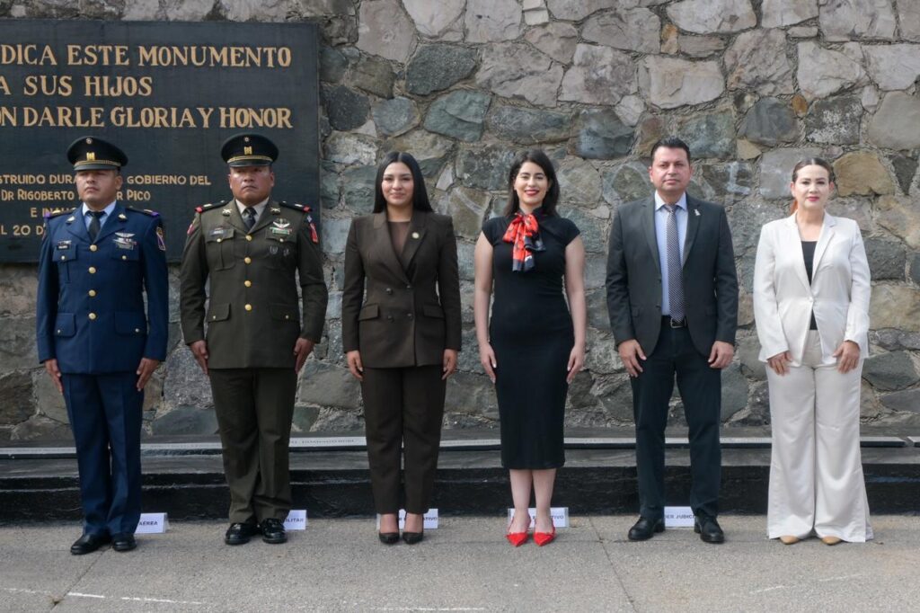 Junto a diversas autoridades civiles y militares se llevó a cabo el acto cívico de izamiento de bandera a toda asta con Honores de Ordenanza en la plaza cívica de Palacio de Gobierno.