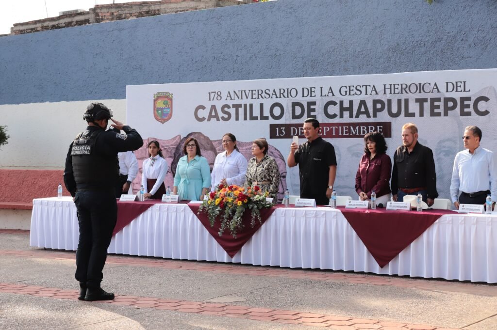 Elementos de la Secretaría de Seguridad Ciudadana y Movilidad Sustentable, al mando de Juan de Dios López Rubio, secretario de Seguridad, dispararon las salvas de honor. El acto cívico fue organizado por la Dirección General de Educación y Promoción Social.