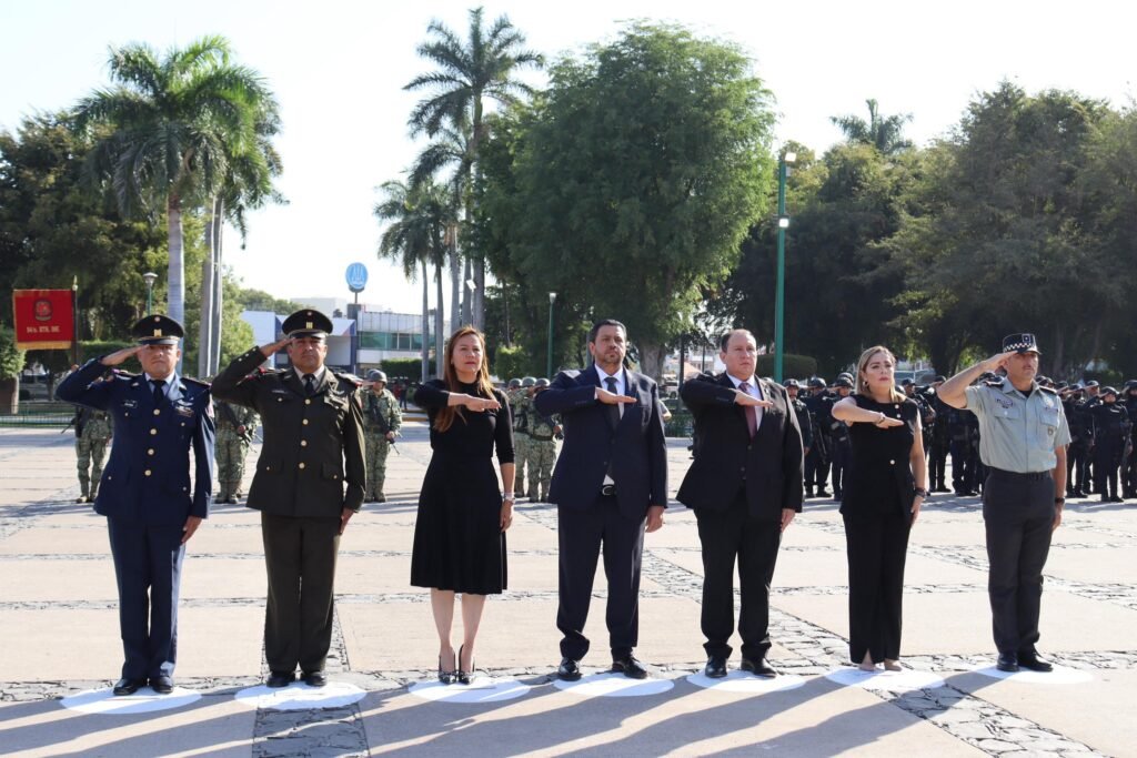 El evento inició con el izamiento de la bandera nacional a media asta, en señal de luto, en presencia de autoridades de los tres poderes del Estado y representantes de la milicia. Estuvieron presentes la diputada Arely Berenice Ruiz López, presidenta de la Comisión de Seguridad Pública del Congreso del Estado; el magistrado Jesús Iván Chávez Rangel, presidente del Supremo Tribunal de Justicia; así como autoridades de la Novena Zona Militar y de la Fuerza Aérea Mexicana.