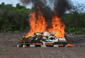 Culiacán | Sinaloa | La Fiscalía General de la República (FGR) prendió fuego a un fuerte cargamento de droga asegurada