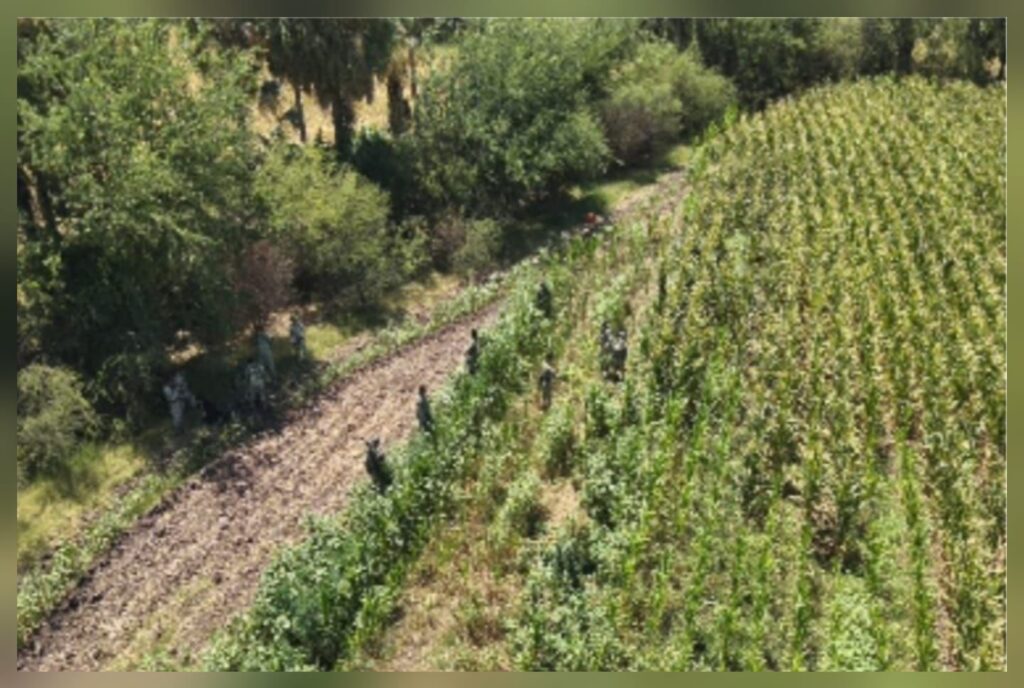 El hallazgo se realizó en el marco de la operación “Búsqueda, Localización y Destrucción de Laboratorios Clandestinos”, donde los elementos militares, apoyados por la Guardia Nacional, la Secretaría de Marina y otras corporaciones estatales y federales, ubicaron el sembradío de aproximadamente 20 metros de ancho por 80 de largo.