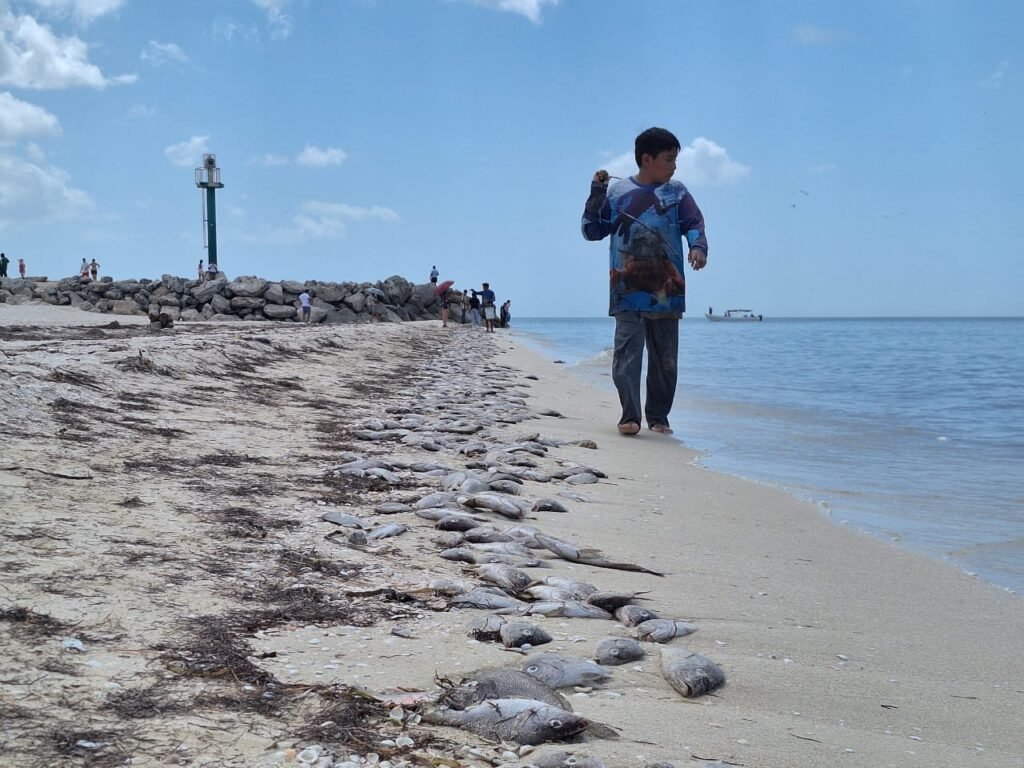 Como medida preventiva, se estableció una veda sanitaria general desde Progreso hasta Celestún, aplicable a la pesca ribereña hasta 40 kilómetros mar adentro. También se recomendó evitar bañarse en el mar para prevenir irritaciones en piel, ojos y vías respiratorias, especialmente en niñas y niños, así como abstenerse de recolectar especies que lleguen a la playa.