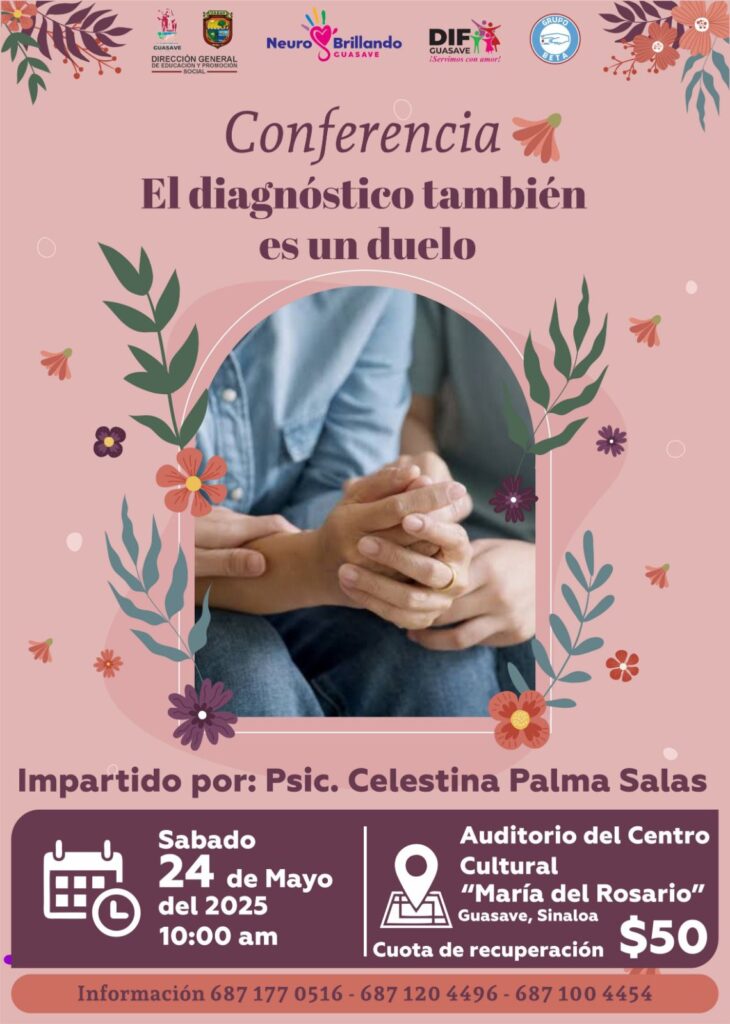 Con la intención de brindar un espacio de contención emocional, reflexión y apoyo para familias que han recibido el diagnóstico de alguna enfermedad o condición en uno de sus integrantes, se llevará a cabo la conferencia titulada “El diagnóstico también es un duelo”. El evento se realizará el próximo sábado 24 de mayo, a las 10:00 de la mañana, en el Auditorio del Centro Cultural “María del Rosario”.