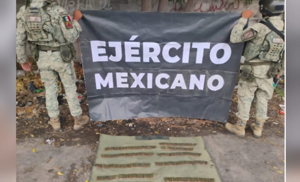 Fue durante trabajos de reconocimiento, en las inmediaciones de la colonia Adolfo López Mateos, que el personal militar localizó un cargador y 461 cartuchos que fueron asegurados por la autoridad.