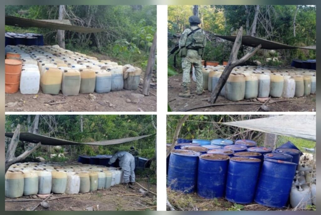 Dicho hallazgo se registró al realizar reconocimientos terrestres en el marco de la “Operación Búsqueda, Localización y Destrucción de Laboratorios Clandestinos” en el poblado Corral Viejo, en la capital del estado, donde el personal militar aseguró lo siguiente: