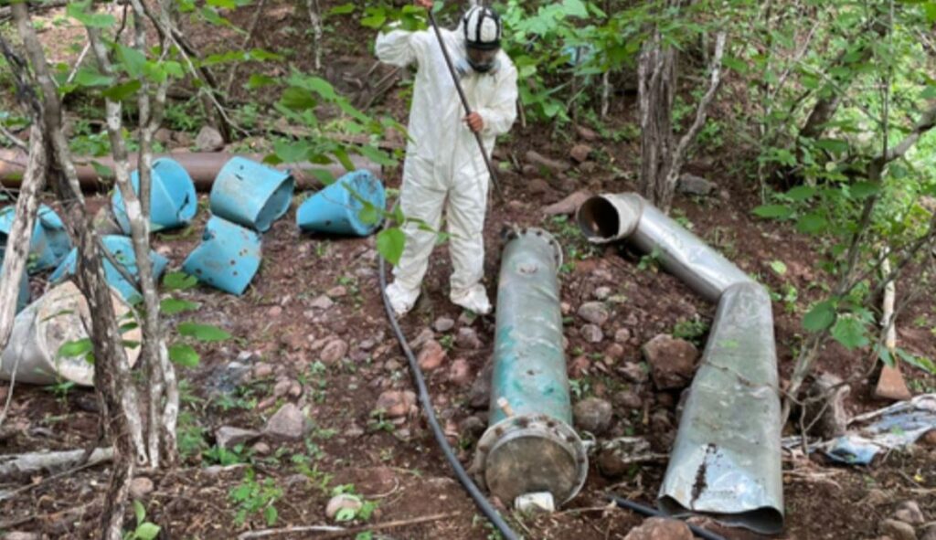 Culiacán | Sinaloa | Personal del Ejército Mexicano, en coordinación con la Guardia Nacional, la Secretaría de Marina, la Secretaría de Seguridad y Protección Ciudadana, la Fiscalía General de la República, la Fiscalía General del Estado y la Secretaría de Seguridad Pública de Sinaloa, a través de la Policía Estatal Preventiva, aseguraron y destruyeron 13 áreas de almacenamiento de precursores químicos, además de un laboratorio clandestino para la elaboración de drogas en Culiacán, Elota y Cosalá.