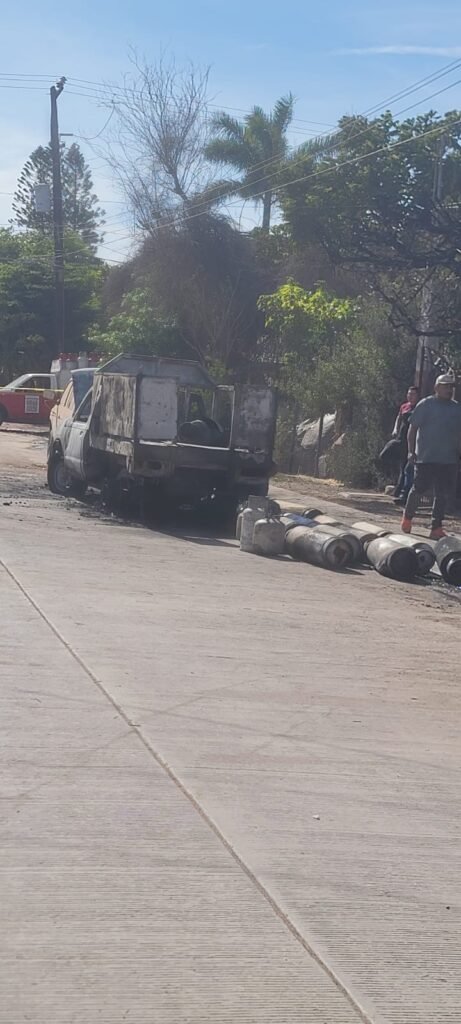 Ahome | Sinaloa | Momentos de terror vivieron habitantes del ejido Mochis, en el municipio de Ahome, luego de que una camioneta repartidora de gas LP se incendiara y registrara la explosión de varios cilindros durante una entrega domiciliaria, generando una intensa movilización de cuerpos de emergencia y daños materiales en viviendas cercanas.