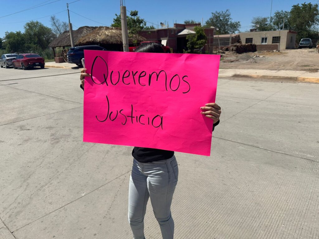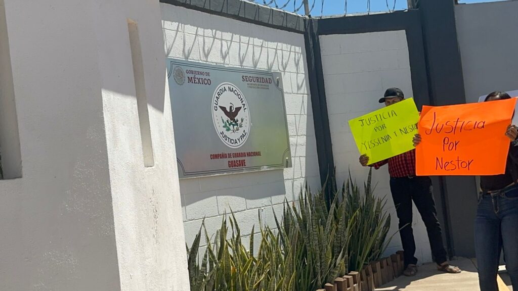 Un grupo de más de 30 personas, entre ellos habitantes de las comunidades de El Alamito y El Aguajito, llegaron al cuartel con cartulinas en las que se leen mensajes como: “Queremos respuesta”, “No más injusticia”, “Señor gobernador, queremos justicia”, “Néstor era un comerciante”, “Justicia para Jessi y su bebé”, “Jessi sólo se dedicaba a sus profesiones”, “Merecemos ser escuchados” y “Justicia para Jessi y Néstor”.