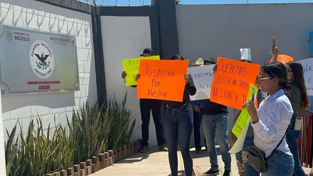 Familiares y vecinos exigen justicia frente a base de la Guardia Nacional en Guasave por muerte de Jessica y Néstor