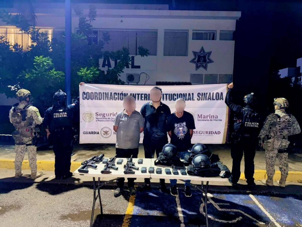 En el lugar fueron detenidos tres hombres, uno de ellos menor de edad. Además, se aseguraron las siguientes armas y equipo: