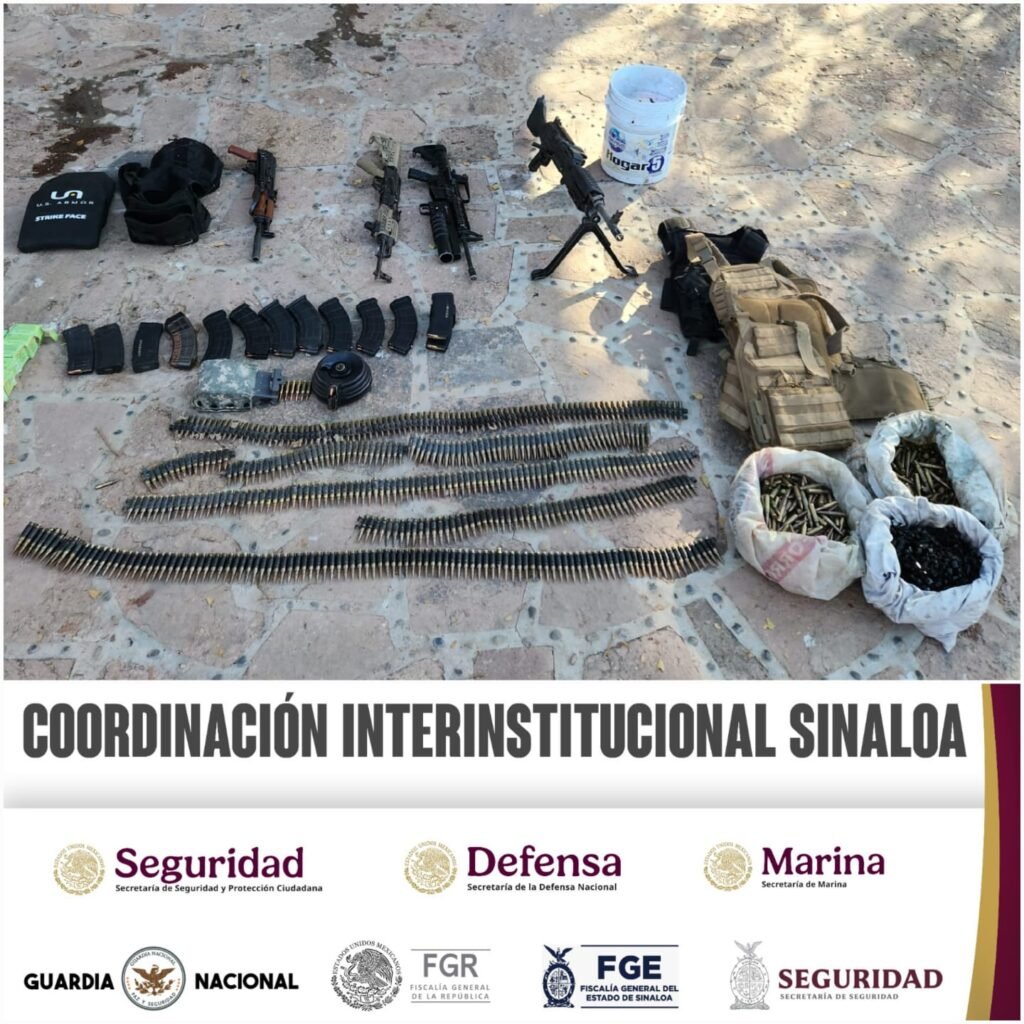 Personal del Ejército Mexicano, en coordinación con la Guardia Nacional, la Fiscalía General de la República, la Fiscalía General del Estado y la Secretaría de Seguridad Pública del Estado a través de la Policía Estatal Preventiva, llevó a cabo el aseguramiento de armas, municiones y tres vehículos, uno de ellos con reporte de robo en el municipio de Culiacán.