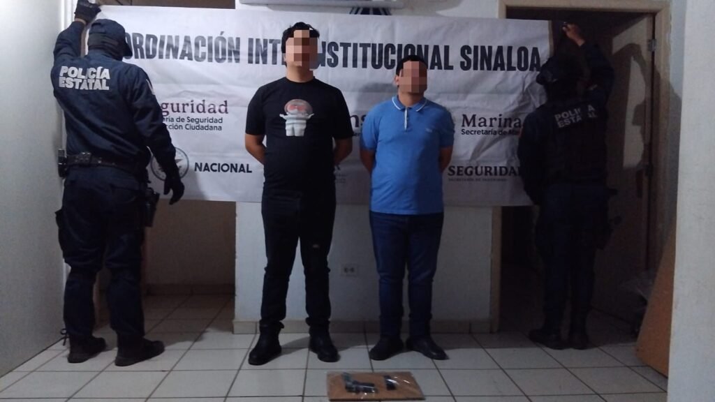Elementos de la Secretaría de Seguridad Pública de Sinaloa, a través de la Policía Estatal Preventiva, en coordinación con el Ejército Mexicano, la Guardia Nacional, la Secretaría de Marina Armada de México, la Fiscalía General de la República y la Fiscalía General del Estado, detuvieron a dos individuos con arma de fuego en Culiacán.