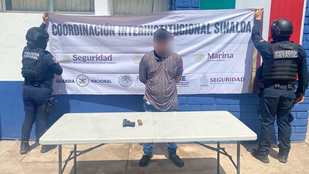 Culiacán | Sinaloa | Elementos de la Secretaría de Seguridad Pública Estatal, a través de la Policía Estatal Preventiva, en coordinación con el Ejército Mexicano, la Guardia Nacional, la Secretaría de Marina, la Secretaría de Seguridad y Protección Ciudadana, la Fiscalía General de la República y la Fiscalía General del Estado, detuvieron a un masculino a quien se le aseguró un arma de fuego.