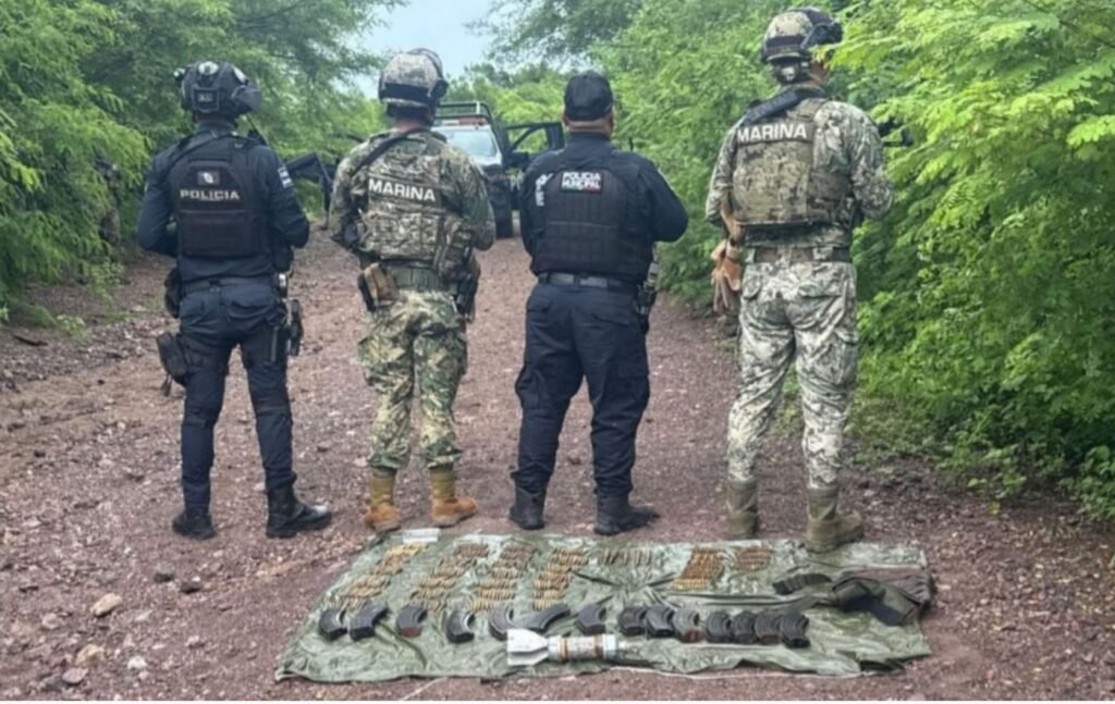 Escuinapa | Sinaloa | Personal de la Secretaría de Marina, en coordinación con el Ejército Mexicano, la Guardia Nacional, la Secretaría de Seguridad y Protección Ciudadana, la Fiscalía General de la República, la Fiscalía General del Estado y la Secretaría de Seguridad Pública del Estado, localizó dos campamentos y aseguró artefactos explosivos improvisados, cargadores y cartuchos en el municipio de Escuinapa.