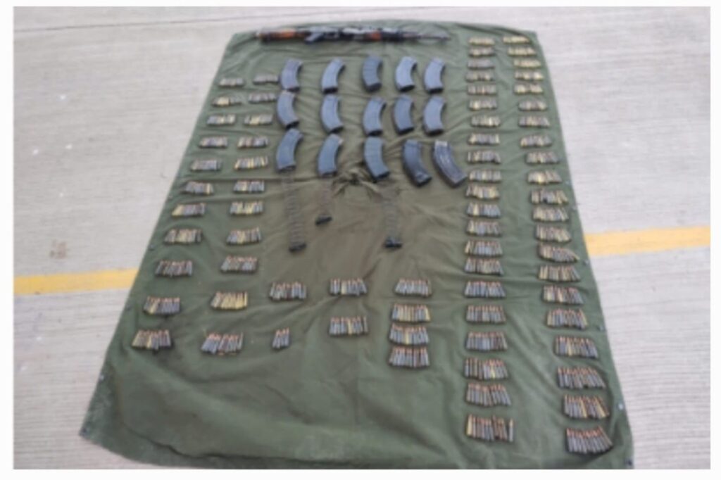 Elementos del Ejército Mexicano, en coordinación con la Guardia Nacional, la Marina, la Fiscalía General de la República, la Fiscalía General del Estado y la Secretaría de Seguridad Pública, aseguraron un arma, cargadores y cartuchos en el municipio de Escuinapa.