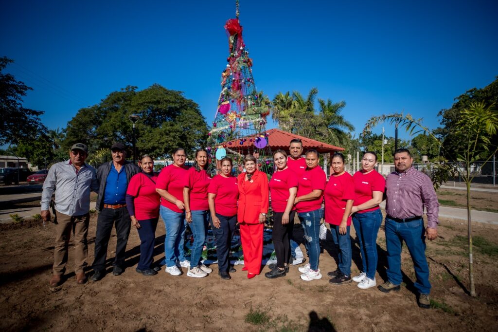 Guasave | Sinaloa | Las niñas, los niños y las familias de El Sacrificio, en la sindicatura de Tamazula, tendrán una posada muy especial, divertida y llena de esperanza en el nuevo parque que hoy inauguró la presidenta municipal, la Dra. Cecilia Ramírez Montoya, donde ya está listo el árbol de Navidad.