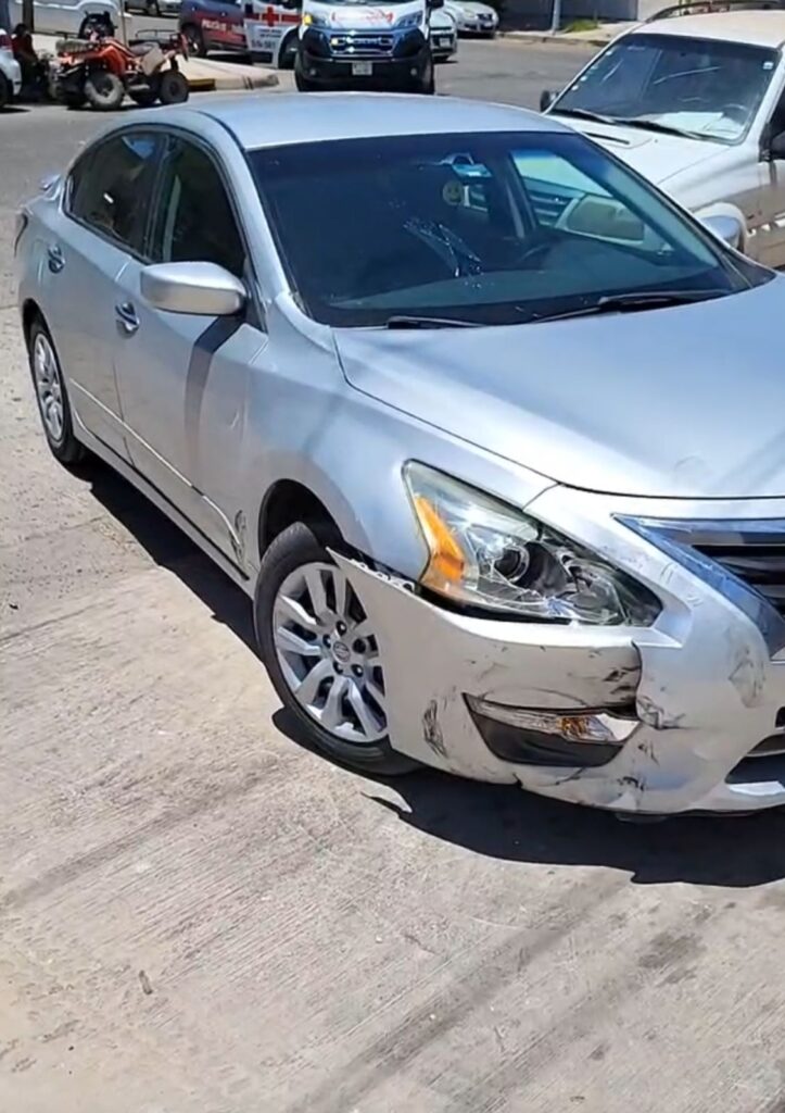 Los Mochis/Sinaloa/ Un accidente impactante ocurrió en la colonia Centro de Los Mochis, específicamente en la intersección de las calles Francisco Javier Mina y María Morelos/Pavón. Una cuatrimoto que circulaba de sur a norte por la calle Francisco Javier Mina no respetó el alto y chocó contra un carro Altima gris.