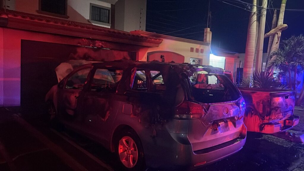 Sinaloa.– Un fuerte incendio registrado durante la madrugada de este jueves movilizó a los cuerpos de emergencia en el sector norte de Los Mochis, luego de que dos camionetas comenzaran a arder frente a un domicilio, generando temor entre los vecinos.