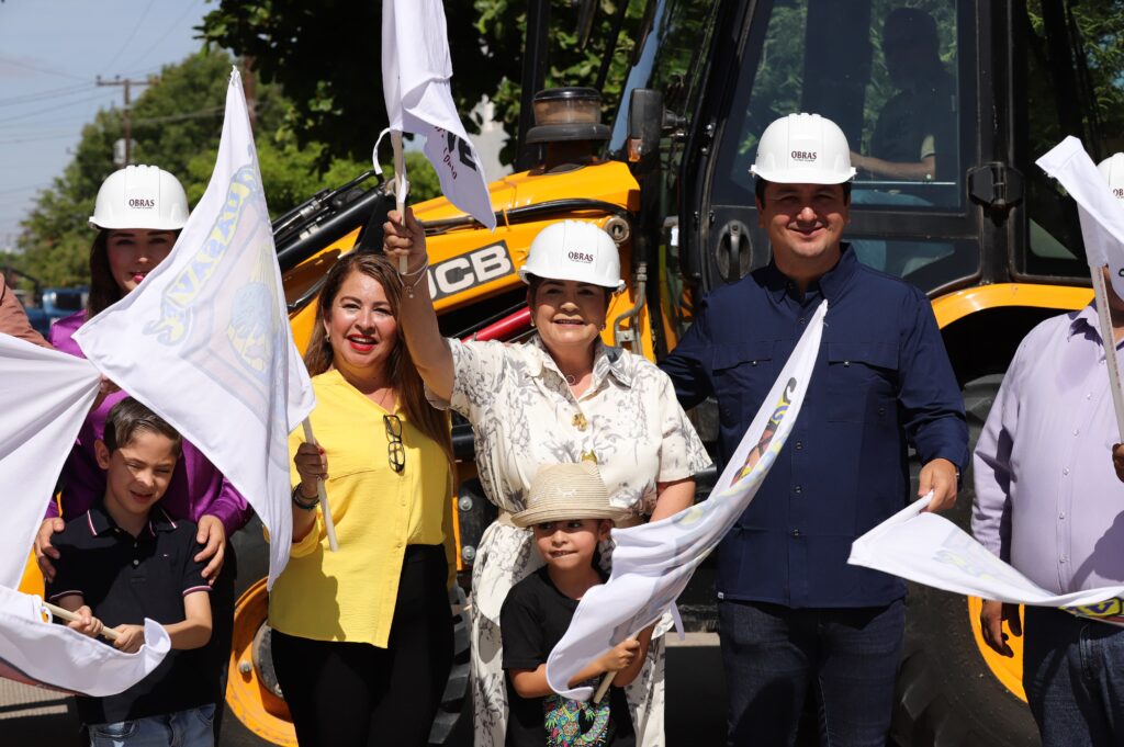 La alcaldesa primero puso en marcha la construcción de banquetas por la calle Ángel Flores, entre Independencia y avenida Libertad, en Bamoa, acompañada del síndico Francisco Miguel López Gálvez; el secretario del Ayuntamiento, Feliciano Valle; el síndico procurador, Fred Flores, la directora general del Bienestar, Fabiola Escárrega; Rael Rivera, director general de Obras y el cuerpo de regidores.