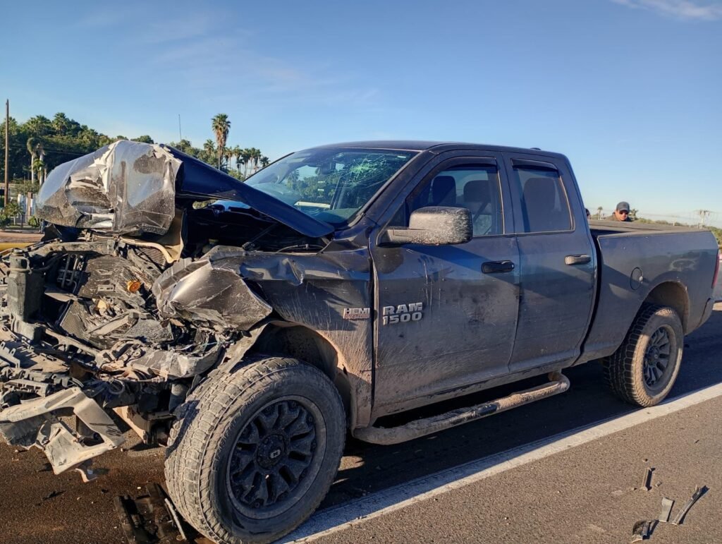 Guasave / Sinaloa / Un hecho de tránsito tipo choque se registró la mañana de este miércoles sobre la carretera Internacional México 15, en el tramo norte a sur, a la altura del puente federal de la sindicatura de Adolfo Ruiz Cortines, donde se vieron involucradas dos camionetas tipo pick up.