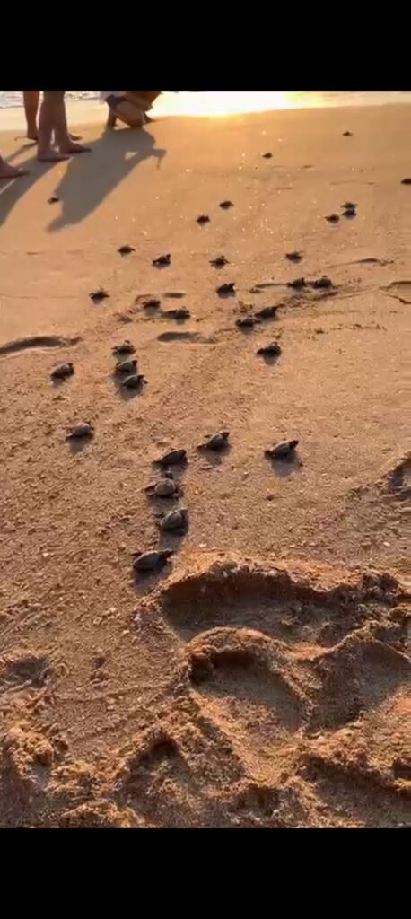 El evento reunió también a familias locales y turistas que acudieron a presenciar el momento en que 530 crías recién nacidas fueron liberadas y emprendieron su camino hacia el mar, generando un ambiente de aprendizaje, emoción y reflexión sobre la importancia de proteger la vida marina.
