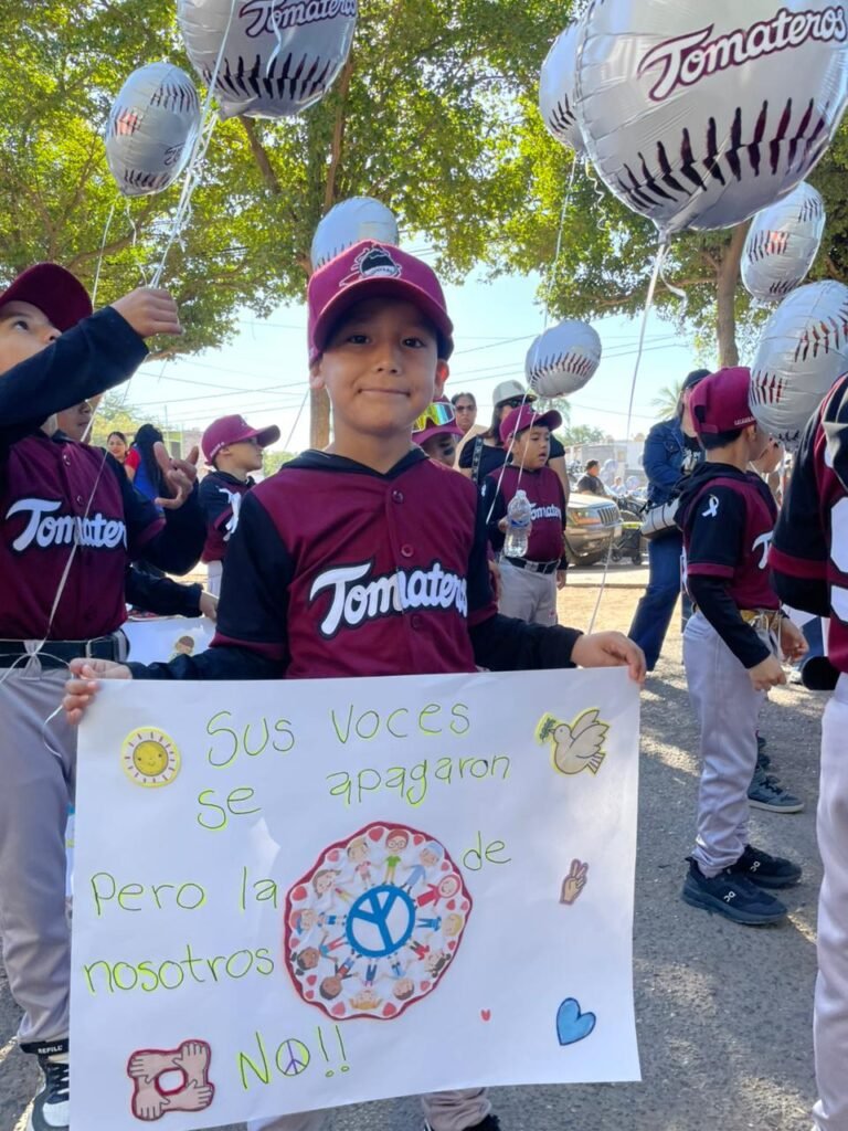 Guasave / Sinaloa | Integrantes de la Liga Linces Guasave, categoría pinguica Nuevos Valores del equipo Tomateros, encabezados por el mánager Silvano Elenes, realizaron un recorrido por distintos puntos de la ciudad para enviar un mensaje de paz dirigido a las niñas y niños de Culiacán y a toda la sociedad sinaloense.