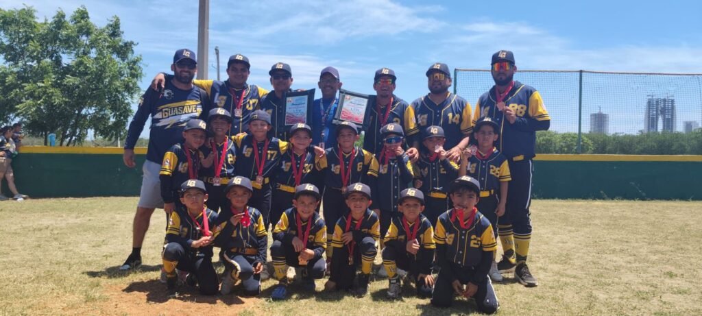 Guasave / Sinaloa / Con garra, talento y una actitud ejemplar dentro y fuera del diamante, el equipo Linces de Guasave A.C., Selección Azul, logró posicionarse en el tercer lugar nacional del Torneo de Béisbol Categoría Escuelita (5-6 años), celebrado en Mazatlán, Sinaloa, del 26 de julio al 2 de agosto.
