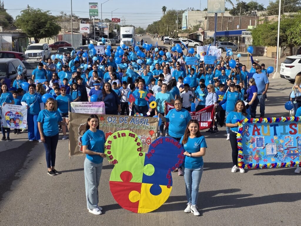 Juan José Ríos, Sinaloa.- Acompañados de diferentes instituciones, desde primarias hasta preparatorias, la alcaldesa Evangelina Llanes Carreón en coordinación con el presidente de Sistema DIF Gabriel Rojo Llanes y Beatriz Corrales Ochoa directora de SIPINNA llevaron a cabo una marcha pacífica en concienciación del Día Mundial del Autismo.