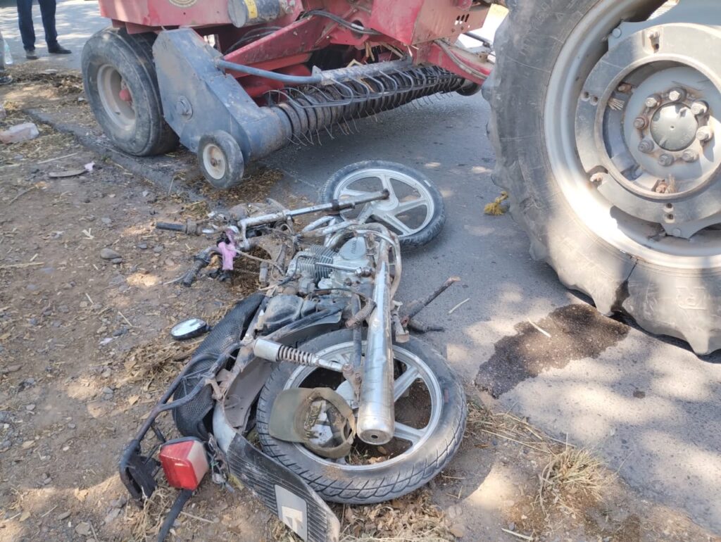 Debajo del equipo agrícola se encontraba una motocicleta Italika 125 color gris, cuyo conductor, identificado como Ernesto “N”, de 53 años de edad, resultó lesionado.