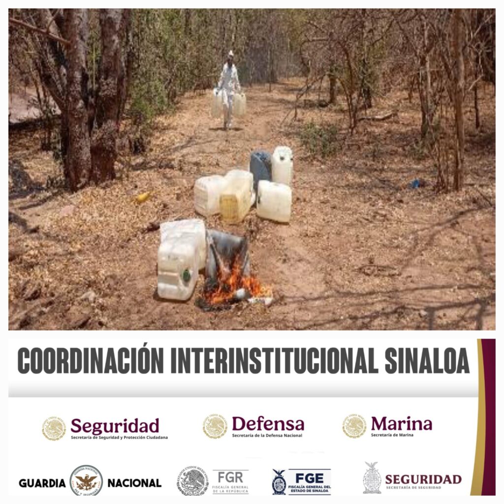 Personal del Ejército Mexicano, en coordinación con la Guardia Nacional, la Secretaría de Marina, la Fiscalía General de la República, la Fiscalía General del Estado y la Secretaría de Seguridad Pública, aseguró y desmanteló 10 laboratorios clandestinos en Culiacán y Cosalá.